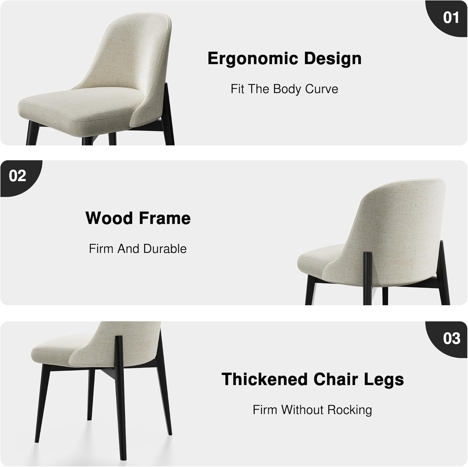 - Upholstered Dining Chair Set : Modern dining chairs measuring 32 inches in height with wooden legs exude elegance and sophistication, making them a great choice for both home and business settings. These dining chairs offer padding and support to ensure your guests sit comfortably during meals or events for your pleasure.