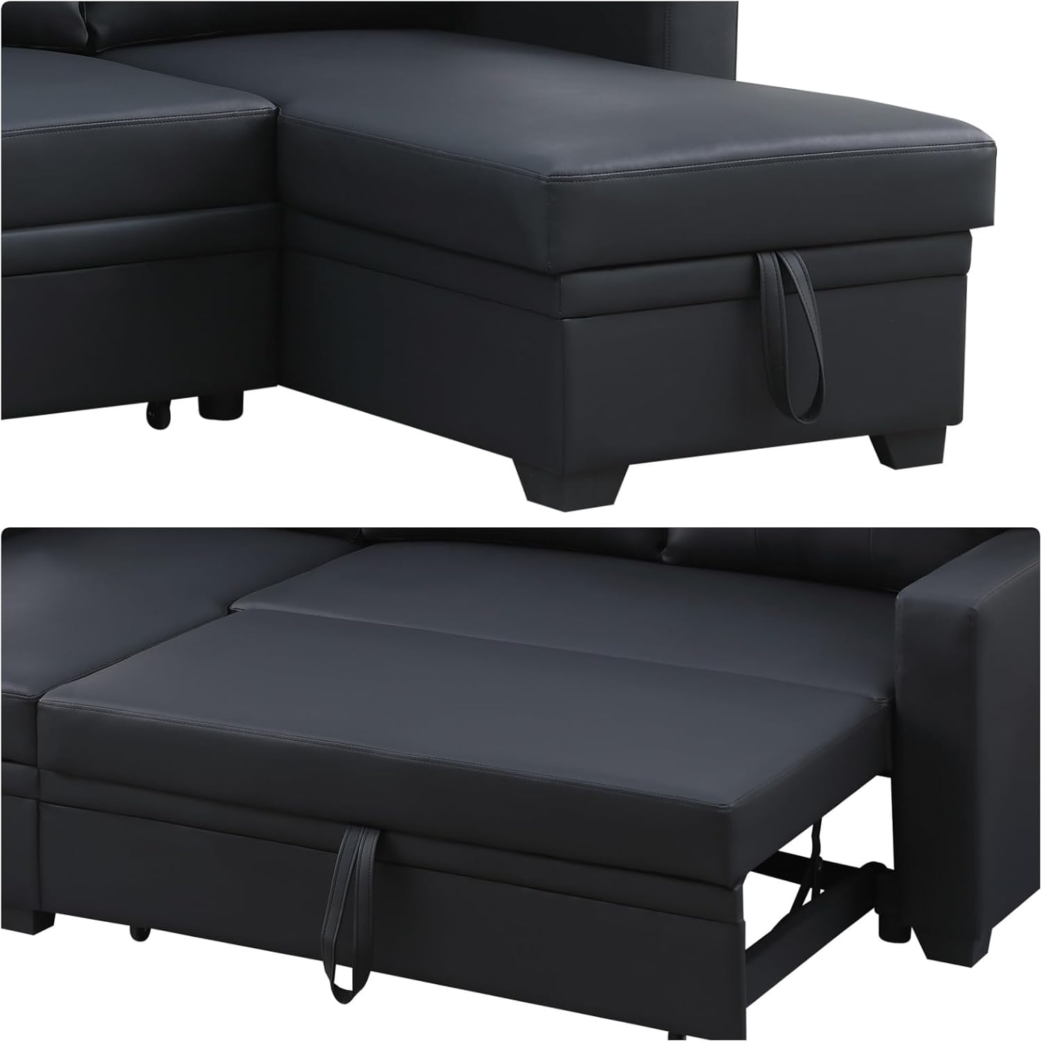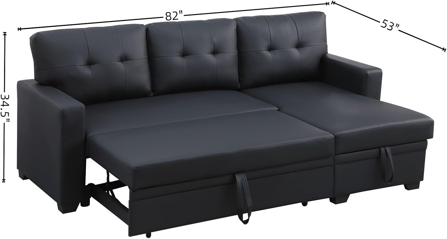 L-Shape Sofa Bed, 82" Sectional Couch with Storage Chaise, Pull Out Sleeper Sofa with Removable Back Cushions, Convertible Corner Couch for Living Room Apartment, Black