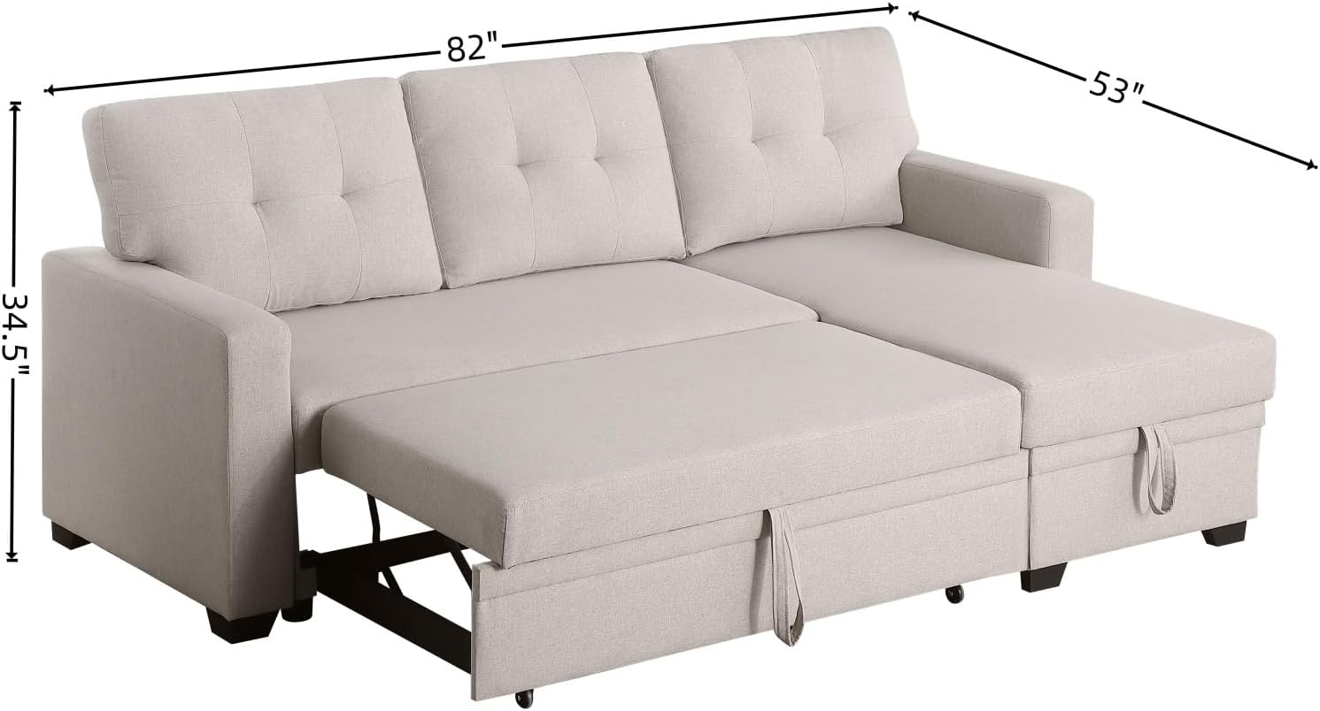 L-Shape Sofa Bed, 82" Sectional Couch with Storage Chaise, Pull Out Sleeper Sofa with Removable Back Cushions, Convertible Corner Couch for Living Room Apartment, Beige