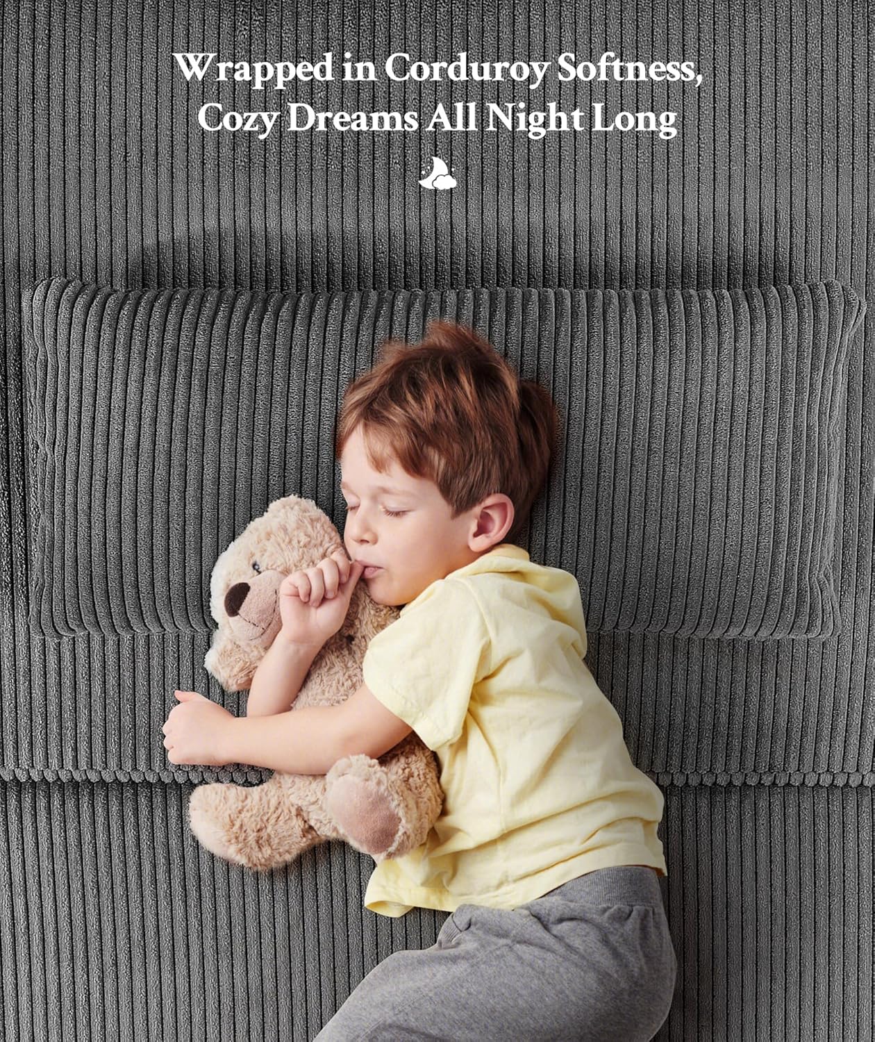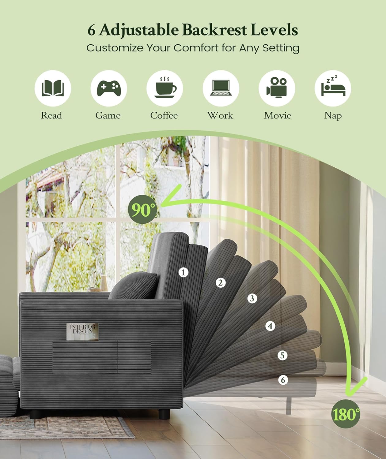 - [Sofa to Bed, Space Made Simple] Why settle for just a Corduroy Couch or just a bed when you can have both? This Sleeper Sofa makes the most of every inch—offering you a cozy seat for daily hangouts, a spacious spot to stretch out for naps, and a comfy Love Seat Sleeper Bed when friends or family stay the night. Perfect for apartments, studios, or multipurpose rooms, Floor Couch for Bedroom saves space while giving you room to live big.
