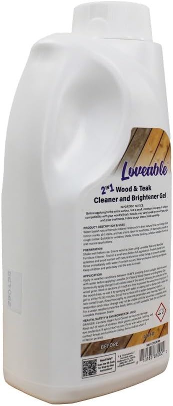 EcoDecors Loveable 2 in 1 Wood & Teak Cleaner and Brightener Gel, 1 L, for Outdoor Use, Cleans, Renews, and Refreshes Outdoor Wood