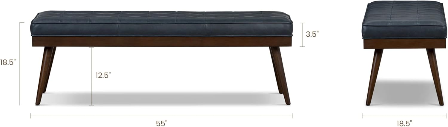 POLY & BARK 55" Tufted Leather Bed Bench for Bedroom End of Bed - Living Room Entry Way Bench - Pure Italian Leather Upholstery with a Solid Wood Frame - Ottoman Bench with Wooden Legs - Deepsky Blue