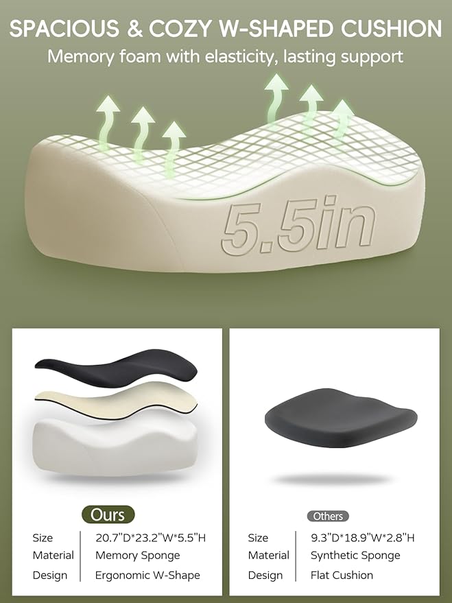 - ใ๐-๐๐ก๐๐ฉ๐ ๐๐๐๐ญ ๐ฐ๐ข๐ญ๐ก ๐๐ฑ๐ญ๐ซ๐-๐๐ก๐ข๐๐ค ๐๐จ๐ฆ๐๐จ๐ซ๐ญใUnlike standard flat cushions, this office chair features a W-shaped seat designed to follow the natural curve of your hips. With a generous 5.5" thickness, the cushion feels supportive yet substantial, offering a stable sitting surface that stays comfortable through long work sessions. The contoured design helps reduce pressure buildupโideal for users who want a seat that feels well-supported, and noticeably more substantial than typical mesh chairs.