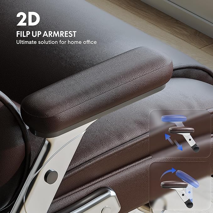 FLEXISPOT 600lbs Big and Tall Office Chair for Heavy People, Heavy Duty Computer Desk Chair with Dynamic Lumbar Support 2D Armrest Blade Wheels, Chairs for Home Office Gaming Working, Leather, Brown
