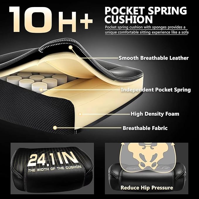 - 👉【Extra Wide Breathable PU Leather Large Office Chair】:Our executive office chair is equipped with a spring cushion to reduce hip pressure. The extra-wide chair backrest and independent lumbar support gently wraps your body and supports your lower back, thoughtfully designed to keep you comfortable during long hours of working, studying or gaming.