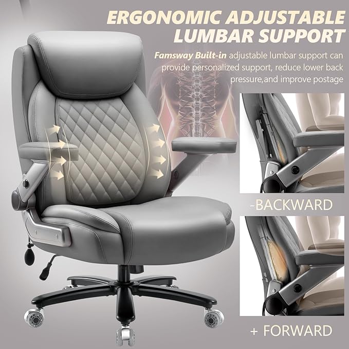 650LBS Large Heavy Duty Office Chair with 5D Flip Arms,Comfy Big and Tall Executive Office Desk Chair with Pocket Spring Cushion,High Back Computer Chair with Lumbar Support,Dual Rubber Wheel