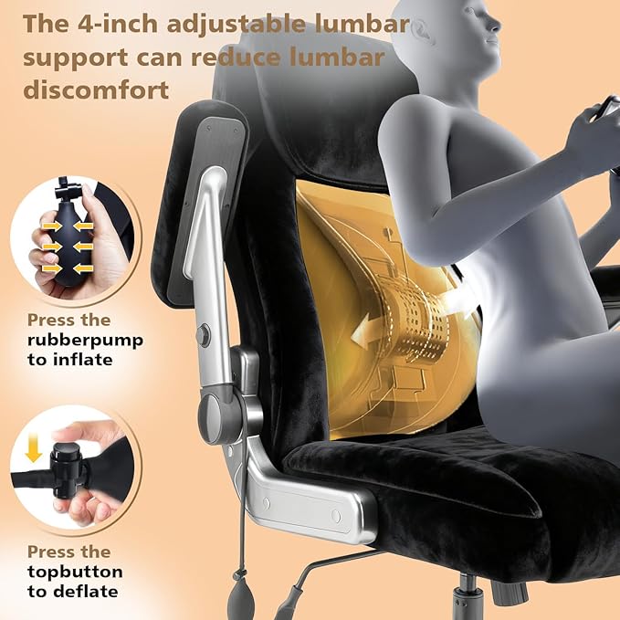 - 👉【Inflatable Lumbar Support For the Prevention Of Low-back Pain】: Our executive office chair boasts an inflatable lumbar support feature that allows you to customize your back support depending on your needs. All you have to do is use the airbag to inflate and adjust the lumbar area to your preferences for optimum comfort during the day. You can also change the seat's height to find the best position and complete your working and studying tasks with maximum convenience