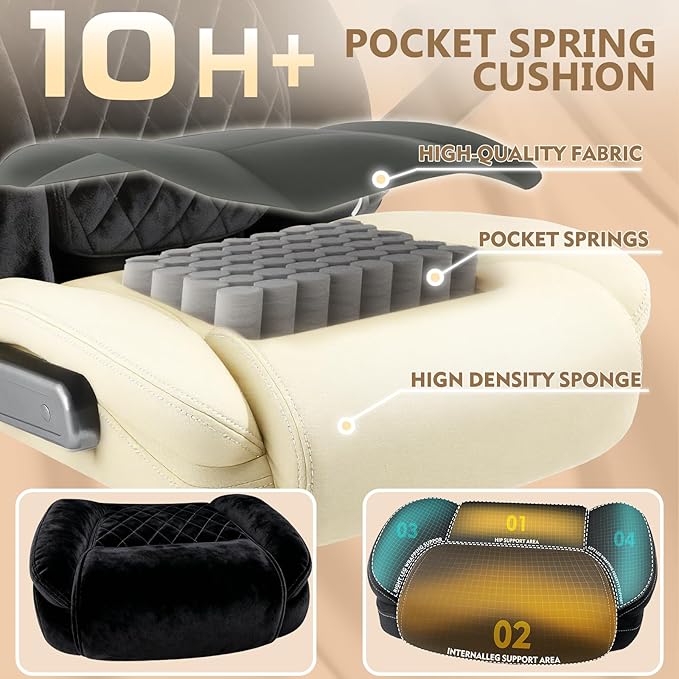 - 👉【Extra Wide Fabric Large Office Chair】:Our executive office chair is equipped with a spring cushion to reduce hip pressure. The extra-wide chair backrest and independent lumbar support gently wraps your body and supports your lower back, thoughtfully designed to keep you comfortable during long hours of working, studying or gaming.
