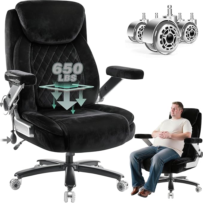- 👉【Enjoy the Ultimate Comfort With 650lbs Big and Tall Office Chair】: Do you want to sink into a chair that feels like a warm hug? The large office chair features plush padding, ergonomic design, multifunctional adjustability and heavy duty metal base. All the characteristics make its a perfect executive office chair for big and tall adult. If you spend long hours at the desk and pursue comfort, support, and functionality, the 650lbs computer chair is exactly your choice