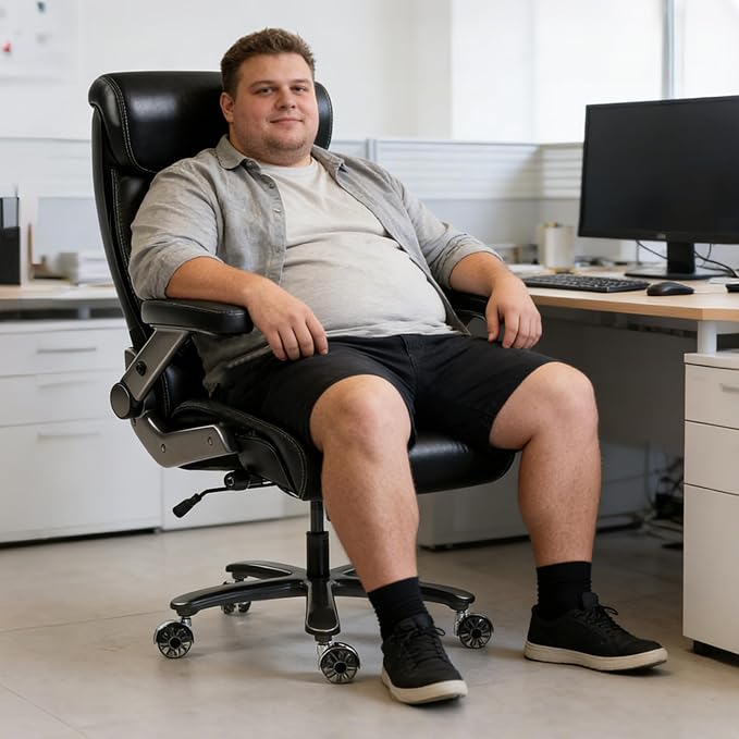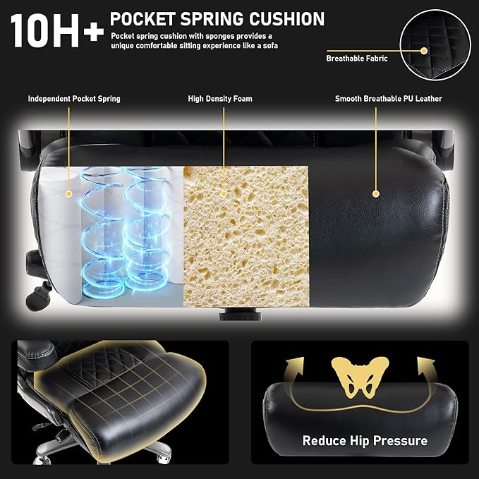 - 700-Pound Heavy-Duty Construction: This heavy-duty office chair features an extra-wide, thickened seat cushion filled with high-resilience dual-layer foam and independent pocket springs. It delivers exceptional support and rebound, significantly reducing pressure on the hips—making it especially comfortable for heavier individuals. The extra-wide backrest and lumbar support gently cradle your body, alleviating lower back fatigue. Whether working or relaxing, it ensures lasting comfort